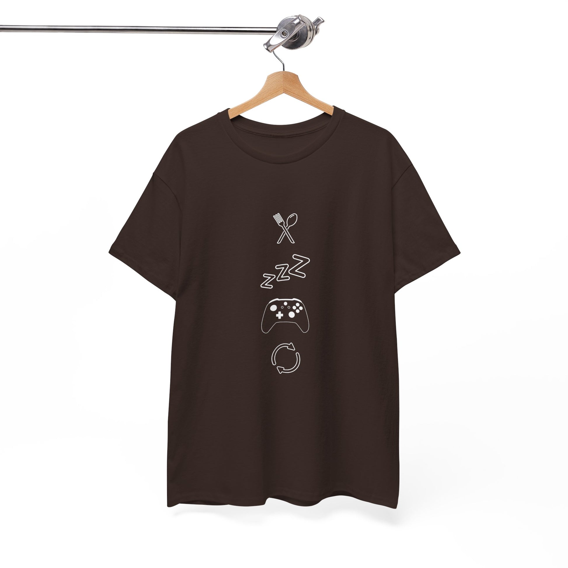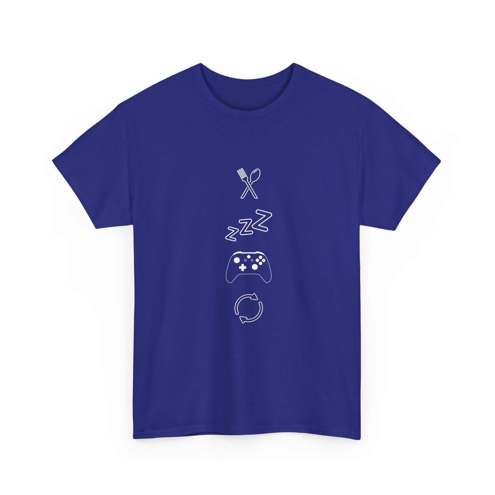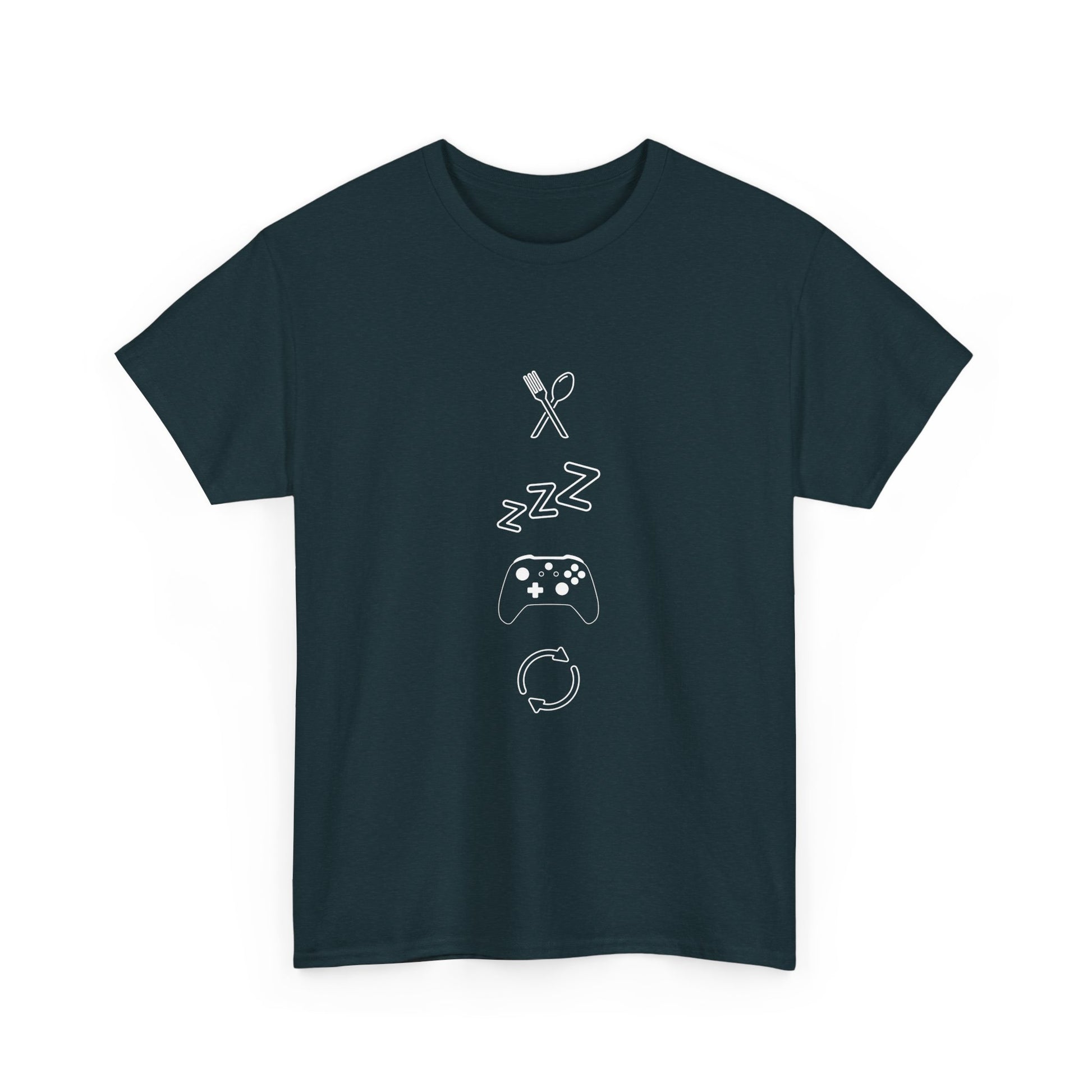 This isn't your average "Eat Sleep Game Repeat" shirt. Our exclusive design from Torendo Studio breaks down the gamer's daily cycle into four clean and clever minimalist icons. It's a subtle, stylish, and modern take on the lifestyle we all know and love.